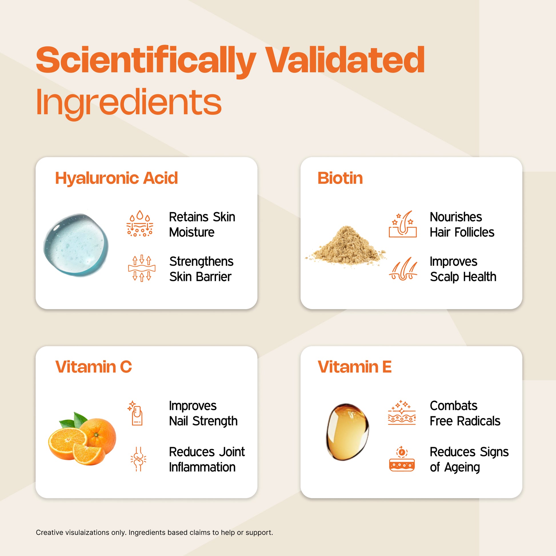 Promotes healthy hair growth, strengthens nails, and nourishes skin from within.