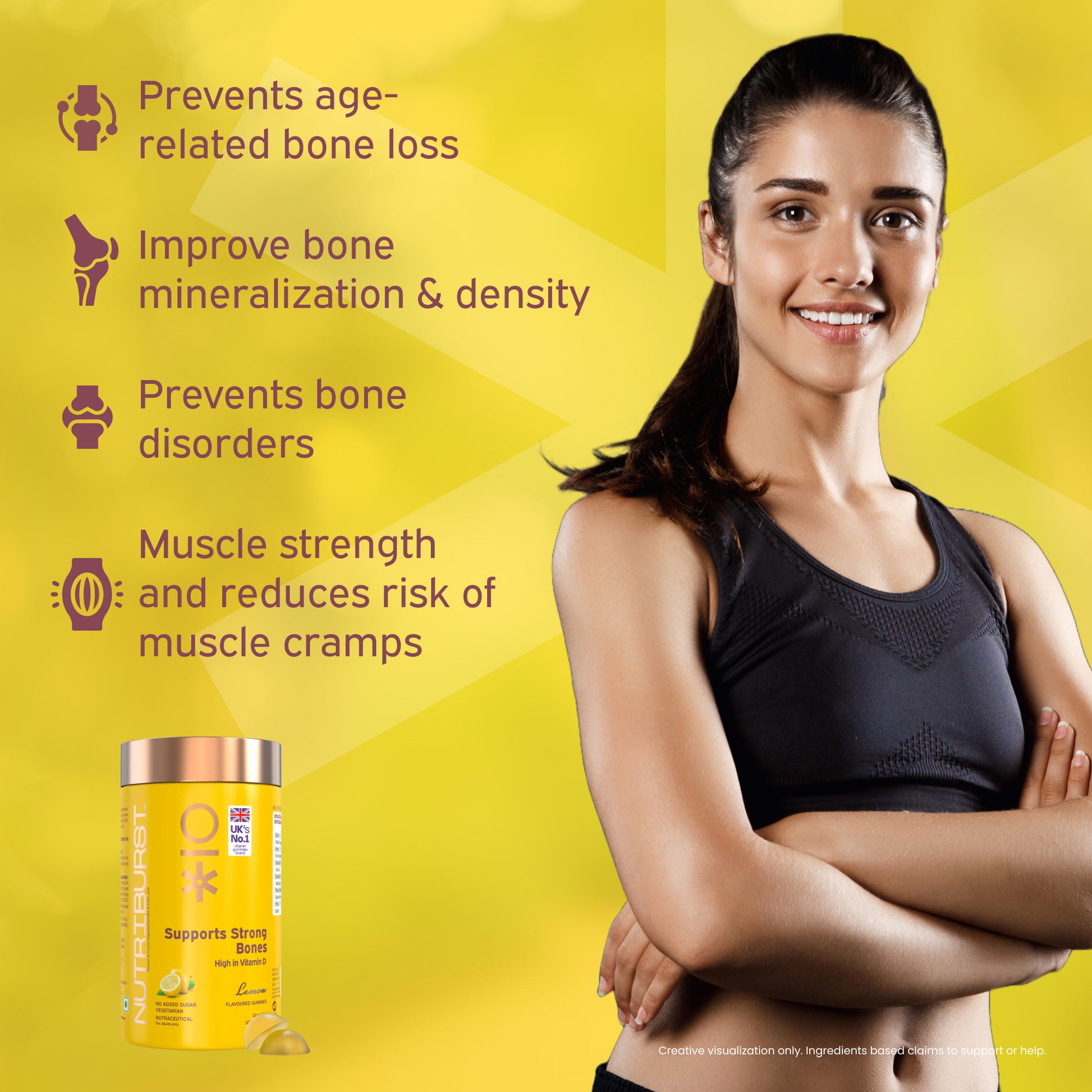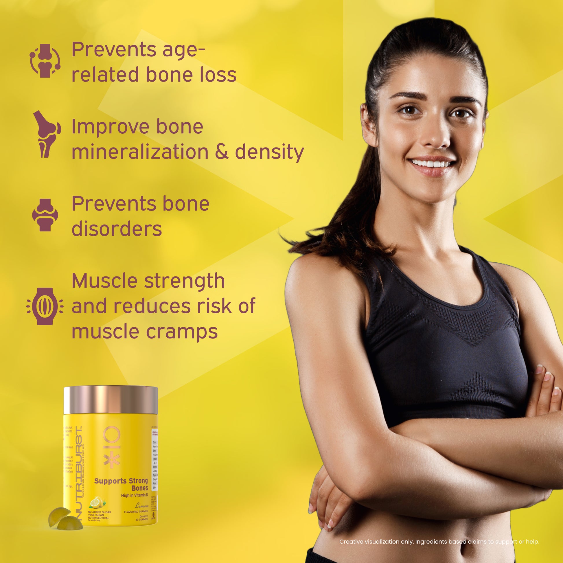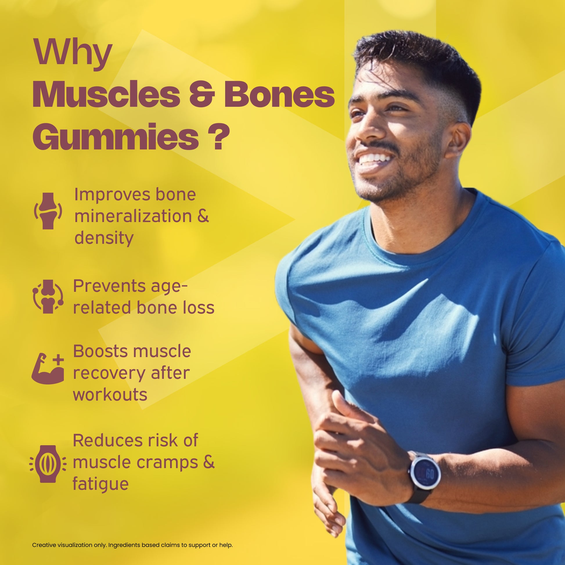 Our Muscles and Bones gummies are fuelled with calcium and vitamin D, which may help you enhance and improve bone density and strength. An essential nutrient that helps in the process of Bone mineralization, vitamin D helps maintain general wellbeing and supports the body’s natural immune response.
