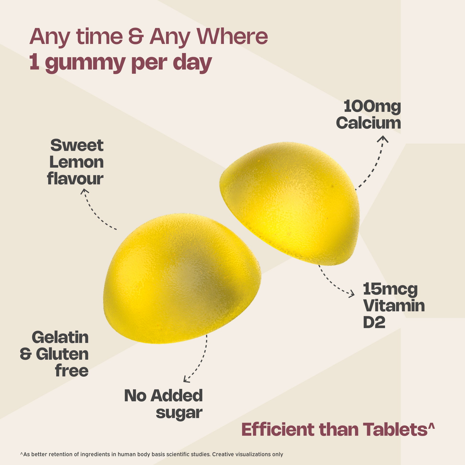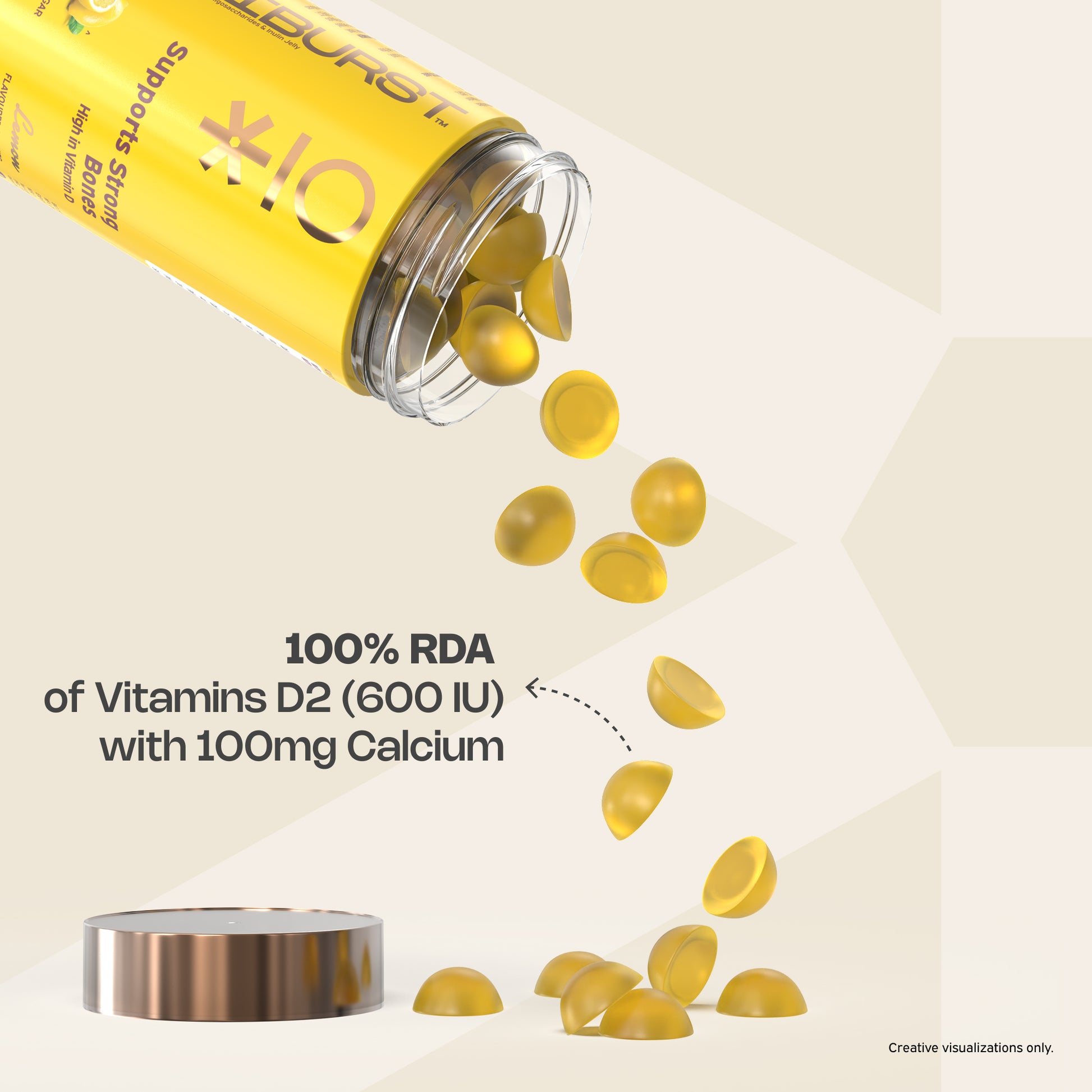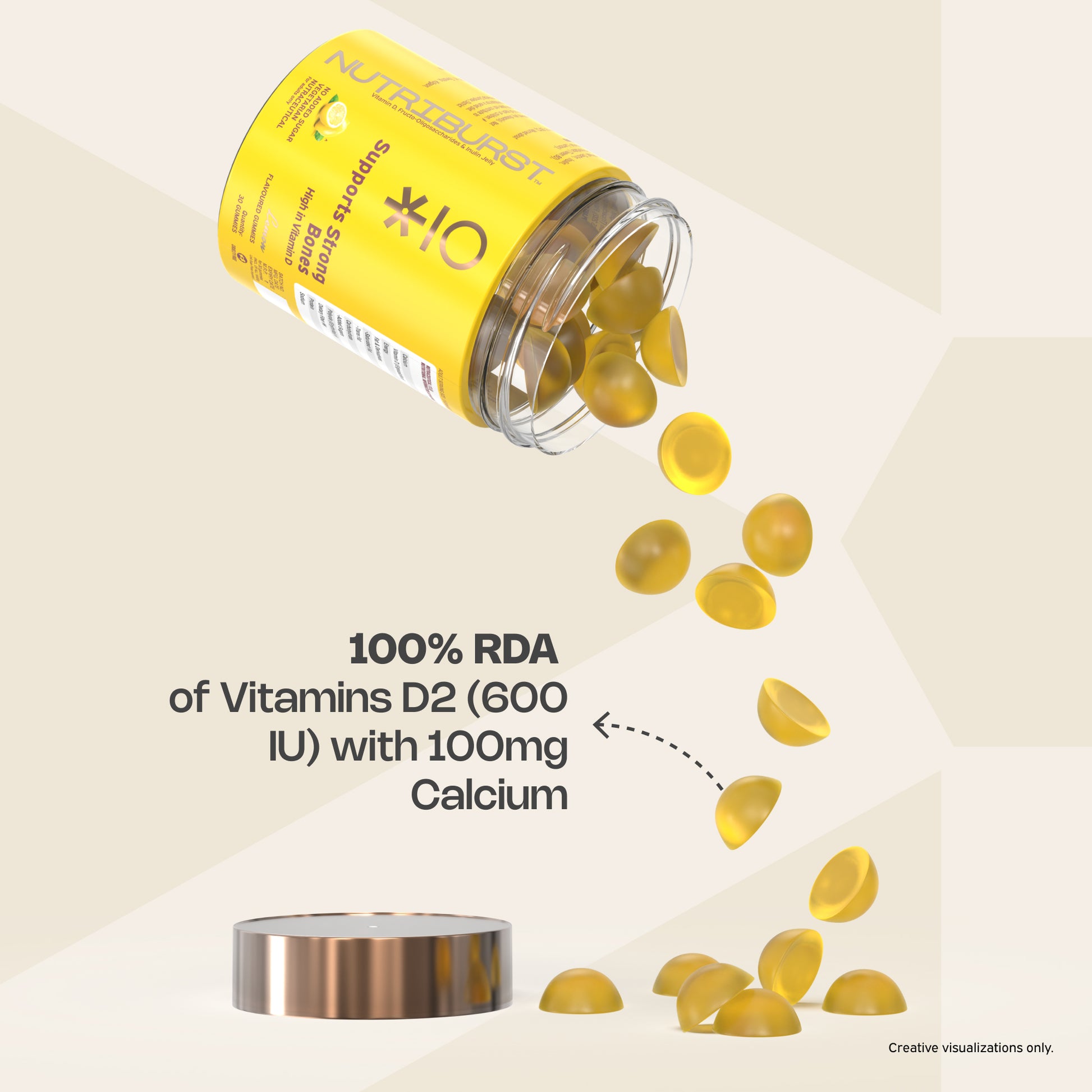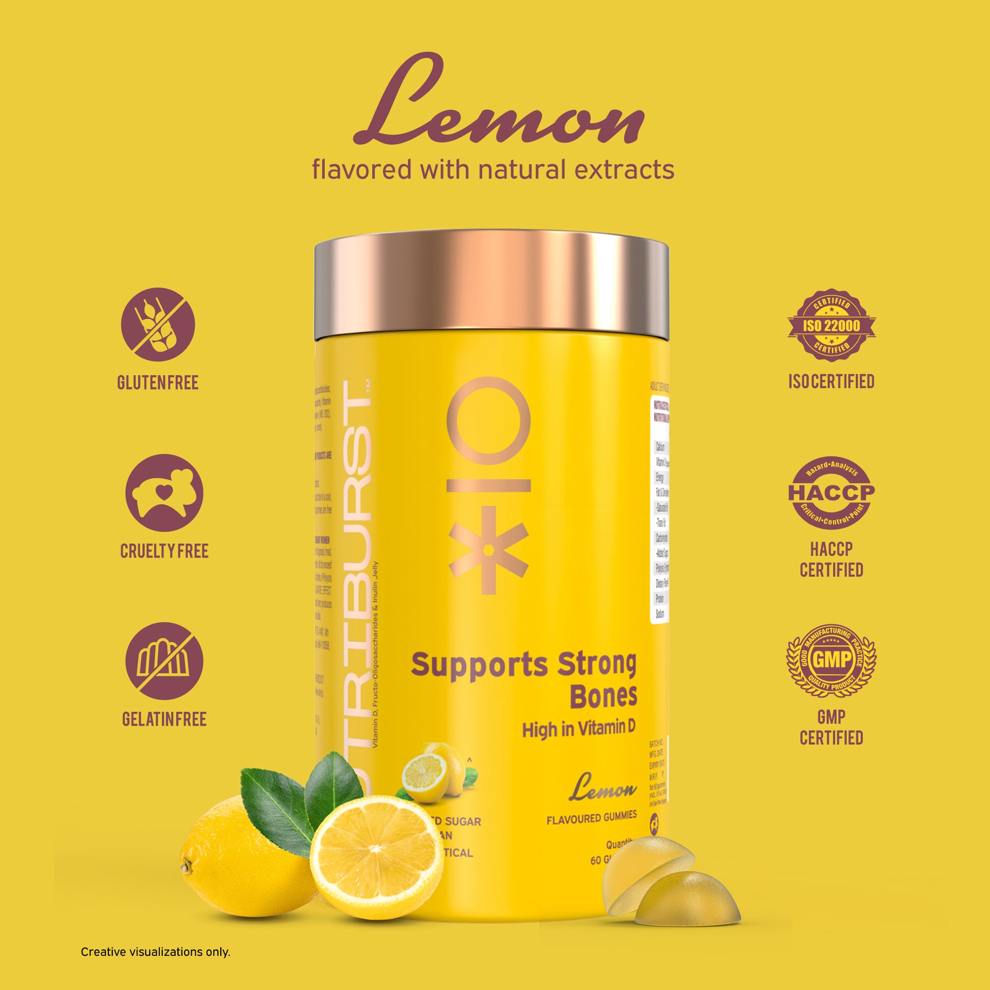 Our Muscles and Bones gummies are fuelled with calcium and vitamin D, which may help you enhance and improve bone density and strength. An essential nutrient that helps in the process of Bone mineralization, vitamin D helps maintain general wellbeing and supports the body’s natural immune response.